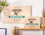 • Reloj de madera personalizado. • Tarjeta recordatoria.