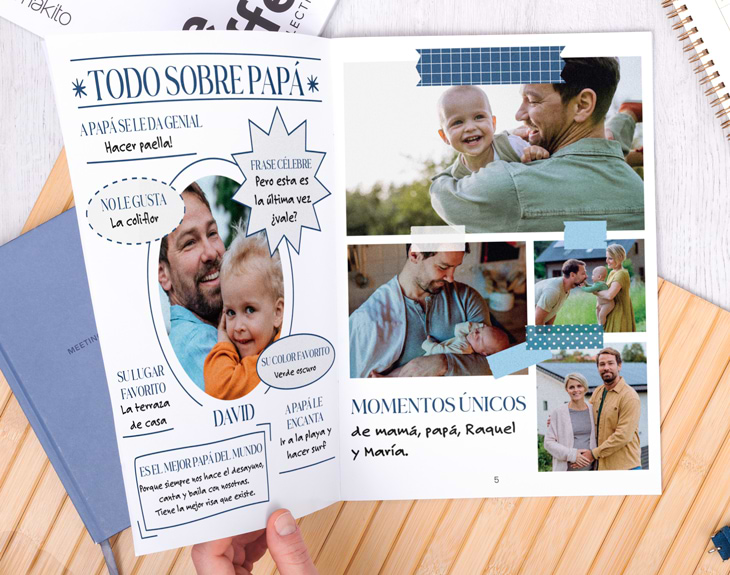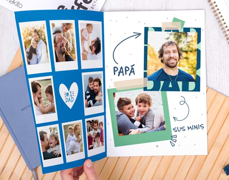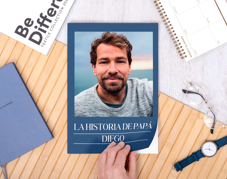 Para el mejor ejemplo de todos. Por estar siempre ahí y, sobre todo, por ser el padre que todos quieren tener, sorpréndelo con esta revista personalizada con fotos y texto. Ideal para regalar este Día del Padre, es mucho más que un álbum: es su historia convertida en un recuerdo lleno de cariño y admiración. La revista "La historia de Papá" te permite personalizar más de 30 fotos y acompañarlas con los textos que tú quieras: fechas importantes, viajes, anécdotas o momentos únicos en familia. Desde la portada hasta la última página, cada detalle se convierte en un pedacito de vuestra historia compartida. Es el regalo perfecto para sorprender a tu padre, ya sea en su cumpleaños o en cualquier ocasión especial. Olvídate de los regalos típicos y apuesta por algo que realmente llegue al corazón. Esta revista no es solo un detalle bonito, es un recuerdo para toda la vida, algo que podréis volver a mirar una y otra vez recordando la preciosa familia que tenéis. Personalizarla es muy fácil: añade la revista al carrito, entra en el área de personalización y empieza a diseñar cada página con vuestras fotos y textos favoritos. En pocos pasos tendrás un regalo original para papá, hecho especialmente para emocionarle. Medidas: 29 x 21 cm Incluye 16 páginas personalizables, incluida la portada.