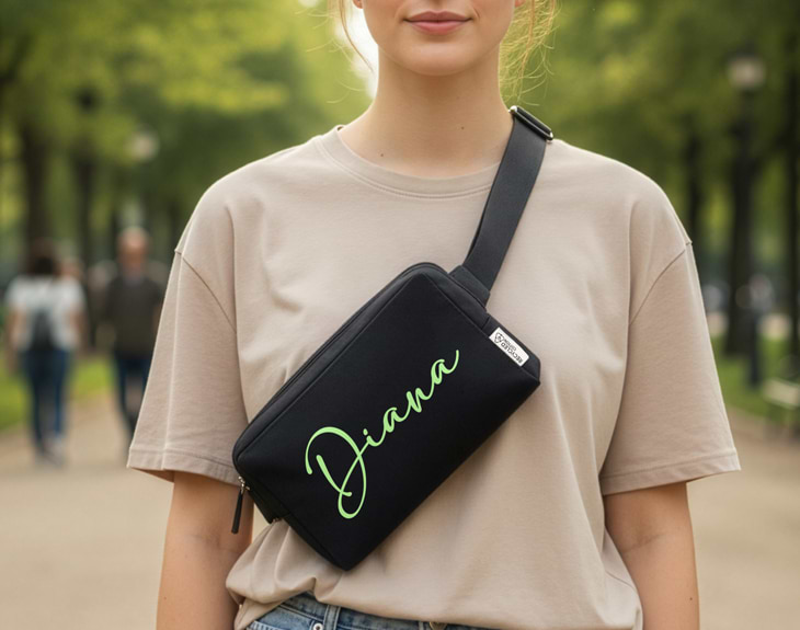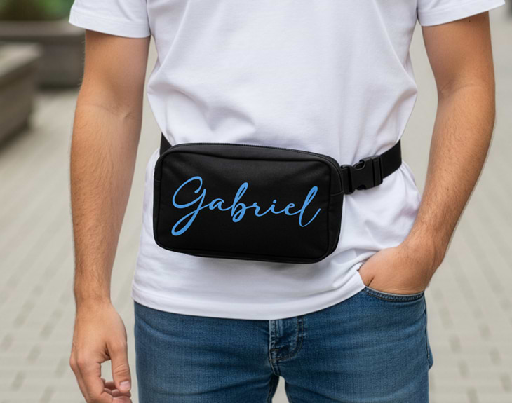 ¿Buscas un regalo que, además de bonito, sea práctico y realmente útil? Entonces esta riñonera negra personalizada es justo lo que necesitas. Es ideal para llevar contigo todo lo imprescindible y moverte con total comodidad, ya sea en un viaje, una tarde de compras o una noche especial. Ahora imagina añadir un nombre y convertirla en algo aún más especial, ya sea para sorprender a alguien importante o para darte un capricho. Con el texto que elijas, esta riñonera se transforma en una pieza única, pensada para acompañar momentos, planes y aventuras. Está fabricada en poliéster, es espaciosa y cuenta con un bolsillo trasero con cremallera, perfecto para guardar los objetos más pequeños con seguridad. Además, personalizar esta riñonera negra es muy fácil y rápido. Solo tienes que añadirla al carrito, entrar en el área de personalización y escribir el nombre que quieras. En poco tiempo estará lista para regalar y sacar una sonrisa. Sin duda, será un regalo original que se usará a diario y se recordará siempre. Medidas: 23,5 x 16,5 x 6 cm.