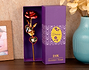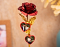 • Rosa roja bañada en oro personalizada. • Corazones de metacrilato. • Tarjeta Recordatoria.