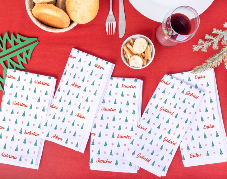 Una de las mejores épocas del año es la Navidad. Nos reunimos con nuestros seres queridos, disfrutamos de comidas familiares y recibimos un montón de regalos. ¡Son unas fechas mágicas y llenas de ilusión! Si quieres tener un detalle con todos tus familiares, tenemos el regalo perfecto. Se trata de nuestras servilletas personalizadas, son perfectas para inundar de espíritu navideño la mesa de las comidas de Navidad o Año Nuevo. Sin duda, lo mejor que tienen es que son personalizables, podrás escribir el nombre que tú quieras. ¡Quedará genial! Y te preguntarás: ¿cómo personalizar esta servilleta navideña? ¡Es súper sencillo! El primer paso a seguir consiste en añadir el producto al carrito y entrar al área de personalización. Una vez ahí, ya puedes escribir el nombre que tú quieras. Pronto estará perfecta y lista para regalar. ¡Será un original regalo para Navidad! Medidas: 49,5 x 50,5 cm. Material: Tela.
