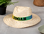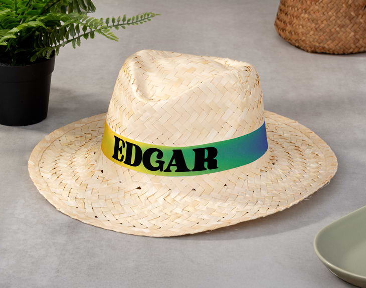 • Sombrero de paja con cinta personalizada. • Tarjeta recordatoria.