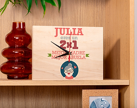 Un 2x1 nunca ha sido tan creíble como esta vez: tu madre y abuela de tus hijos es la mejor del mundo mundial. Esta combinación tan perfecta se merece un premio por la paciencia, la grandeza, el amor y todo el carisma que tiene. Nuestra tabla de madera personalizada tiene entonces el diseño perfecto para hacer sonreír a la mujer de tu vida: tu madre, y además, abuela de tus hijos. Sácale una enorme sonrisa el Día de la Madre, en su cumpleaños o cualquier día del año.