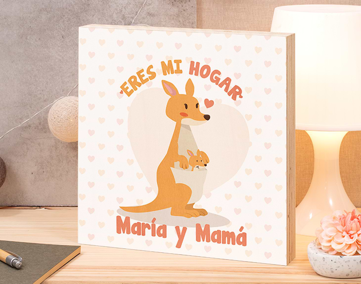 ¿Cuándo estás cerca de tu madre sientes que nada malo puede pasar? Si es la persona que más calma y confianza te transmite, este diseño os representa a la perfección. Se trata de una mamá canguro cuidando de su cría, al igual que hace tu madre contigo. Por eso, si quieres tener con ella un detalle especial, esta tabla de madera personalizada con vuestros nombres es una gran opción. Puedes aprovechar el Día de la Madre o su cumpleaños para demostrarle que es tu persona favorita...¡Le gustará muchísimo!