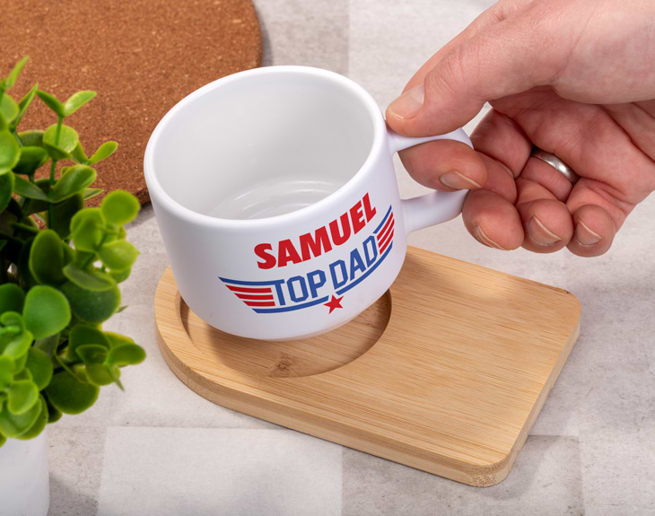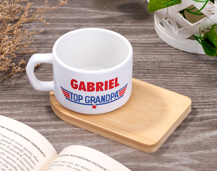 Para los que siempre están ahí, para los que lo dan todo por su familia… esta taza blanca con bandeja personalizada de madera es un detalle perfecto para sorprenderles. Un regalo pensado para papá o abuelo, ideal para celebrar el Día del Padre o cualquier ocasión especial con algo útil, bonito y lleno de significado. Este set combina una taza blanca personalizable con una bandeja de madera natural, creando un conjunto perfecto para disfrutar del café, el té o el desayuno. El diseño “Top Dad / Top Grandpa” se puede personalizar con el nombre, convirtiéndolo en un regalo único que hará que cada momento de café sea aún más especial. La bandeja es perfecta para servir el desayuno, acompañar sus momentos de descanso o simplemente para tener un pequeño espacio donde colocar su taza favorita. Un detalle sencillo que se convierte en un recuerdo lleno de cariño. Un regalo ideal para padres y abuelos que disfrutan de esos pequeños momentos del día: el primer café de la mañana, una merienda tranquila o un desayuno preparado con amor. ¿Cómo personalizar este regalo? Solo tienes que añadir el producto al carrito y acceder al área de personalización. Allí podrás escribir el nombre que aparecerá en el diseño “Top Dad / Top Grandpa”. Nosotros nos encargaremos de preparar el set para que llegue listo para regalar. Un regalo original para el Día del Padre que seguro se convertirá en uno de sus favoritos para empezar el día con una sonrisa. Capacidad: 180 ml. Importante: Esta taza no es apta para lavavajillas. Para mantener la personalización y la calidad del diseño, lavar siempre a mano con agua tibia y jabón suave. Evitar el uso de estropajos abrasivos.