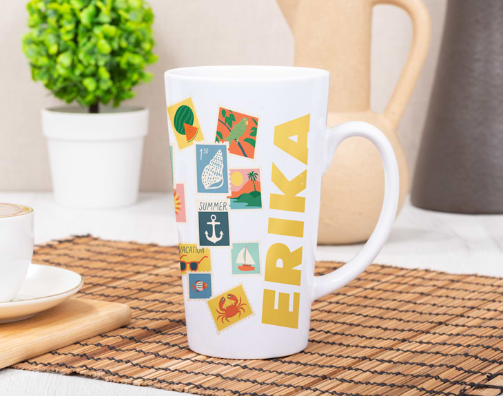 Dale a tus mañanas un toque especial con nuestra taza cónica personalizada que lleva los sellos de tus ciudades favoritas. Ideal para disfrutar de tu café o té con estilo, y para mostrar tu amor por esos lugares únicos que te inspiran o por esos momentos inolvidables. Con un diseño lleno de vida e historia, estos sellos representan diferentes ciudades y momentos de diversión, haciendo de esta taza el regalo ideal para viajeros o simplemente para darte un capricho. Lleva tus destinos favoritos siempre contigo. Personalizarla es muy fácil: selecciona el diseño de sellos que más te guste, escribe el nombre en el área de personalización y listo. Tendrás una taza divertida, exclusiva y hecha con mucho cariño, el regalo original, perfecto, moderno y con mucho estilo que siempre recordarán. Material: cerámica. Capacidad: 400ml. Altura: 15,5 cm. Circunferencia parte superior: 28 cm. Circunferencia parte inferior: 20,5 cm.