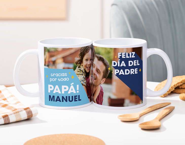 Para decirle lo mucho que significa, con esta taza personalizada con foto y texto podrás sorprender a papá con un detalle único que le acompañará cada mañana. Un regalo lleno de recuerdos y cariño que hará que su café, té o desayuno favorito tenga un significado mucho más especial. Esta taza personalizada para el Día del Padre te permite añadir una foto especial junto a un mensaje dedicado. Puede ser una imagen con sus hijos, un recuerdo familiar o ese momento que siempre os hace sonreír. Además, podrás completar el diseño con el texto que quieras: una frase divertida, una dedicatoria emotiva o simplemente su nombre. Cada vez que la utilice recordará ese momento tan especial. Personalizar tu taza es muy fácil: añade el producto al carrito y accede al área de personalización. Allí podrás subir tu foto favorita y escribir el mensaje que quieras incluir. Nosotros nos encargaremos de prepararla con todo el cuidado para que llegue lista para regalar. Un regalo original para papá que convertirá cada café en un momento lleno de recuerdos.