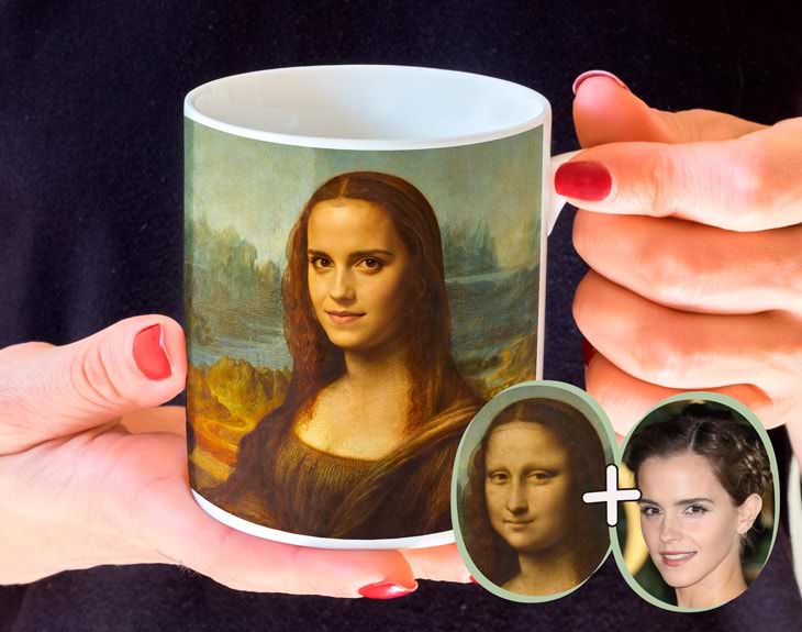 La Mona Lisa o la Gioconda, no importa cómo te refieras a ella porque sigue siendo uno de los cuadros más famosos de la historia del arte. Y es que Da Vinci se coronó con esta obra tan icónica y que todo el mundo conoce. Si alguna vez has pensado cómo sería poner tu cara en esta figura, con esta taza personalizada podrás hacerlo. Es el momento de fusionarte con la Mona Lisa y tener un regalo de lo más original para cualquier ocasión especial. Un cumpleaños, el Día del Padre o de la Madre, el amigo invisible... Son momentos perfectos para triunfar con este original regalo. Olvídate de sorprender a esa persona con esas cosas tan típicas que regalamos siempre, y sácale una sonrisa con la mejor taza del mundo. Además, si es fan del arte, de los museos y de los cuadros, le encantará ver a la Gioconda más especial del mundo con su cara. ¡Es lo más! Y llega el mejor momento que es personalizar tu taza. Añade el producto al carrito y entra en el área de personalización. Una vez dentro, lo único que tienes que hacer es subir tu foto y el sistema se encarga de fusionarla con la imagen de la Mona Lisa. El resultado te flipará porque quedará súper real, ya que tu foto tendrá el mismo color y la misma expresión que la imagen de la Gioconda. ¡Es un regalazo! Al comprar este diseño podrás elegir el tipo de taza que quieres entre nuestras seis opciones disponibles en el desplegable: cerámica, mágica, plástico, con el interior en color, con cuchara o con asa en forma de corazón. En el lado derecho encontrarás la guía de tazas con las características de cada una de ellas. ¡Escoge el estilo y la cantidad de tazas que quieras! Importante: recomendamos subir una imagen donde la cara se pueda ver claramente. Es preferible que la persona no lleve accesorio como gafas o gorras ya que podría distorsionar la imagen.
