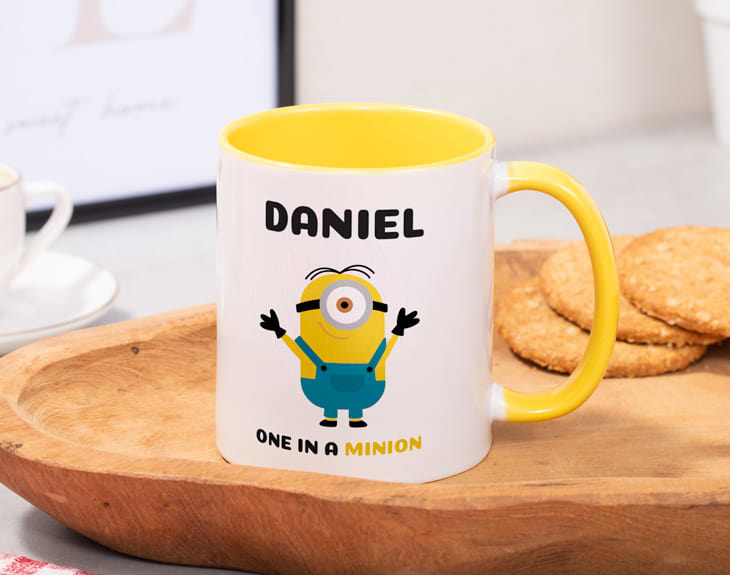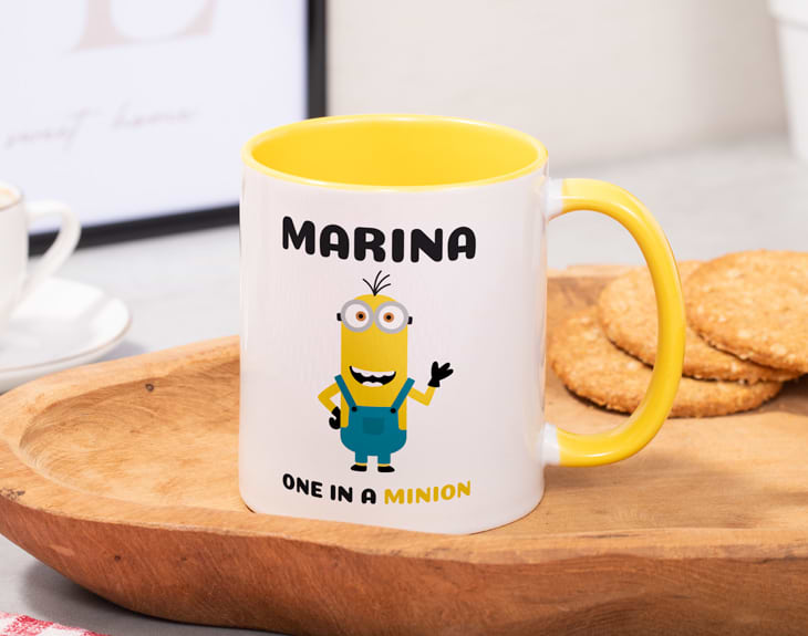 Alguien nos ha dicho que es el cumpleaños de una persona muy especial y que además es súper fan de Gru y sus minions. Por eso, hemos creado esta taza personalizada tan chula para sorprenderle en ese día tan especial. Su diseño es lo más porque podrás elegir tu minion favorito y personalizar la taza añadiendo el nombre que tú quieras. ¡Será un detalle único porque nadie tendrá uno igual! Si quieres sorprender de la mejor manera a esa persona tan especial que cumple años, hazlo con esta original taza que le servirá para empezar cada día con mucha energía. Así, disfrutará de sus desayunos al máximo y seguro que nadie tiene una taza igual que esta porque es única. Podrás combinar este diseño de minions con el modelo de taza que más te guste, desde la típica taza banca hasta la que tiene el interior de color. ¡Hay para todos los gustos! A la hora de personalizarla lo único que tienes que hacer es completar este diseño con el minion que más te guste y añadir el nombre del cumpleañero o cumpleañera. ¡Quedará genial! Al comprar este diseño podrás elegir el tipo de taza que quieres entre nuestras seis opciones disponibles en el desplegable: cerámica, mágica, plástico, con el interior en color, con cuchara o con asa en forma de corazón. En el lado derecho encontrarás la guía de tazas con las características de cada una de ellas. ¡Escoge el estilo y la cantidad de tazas que quieras!
