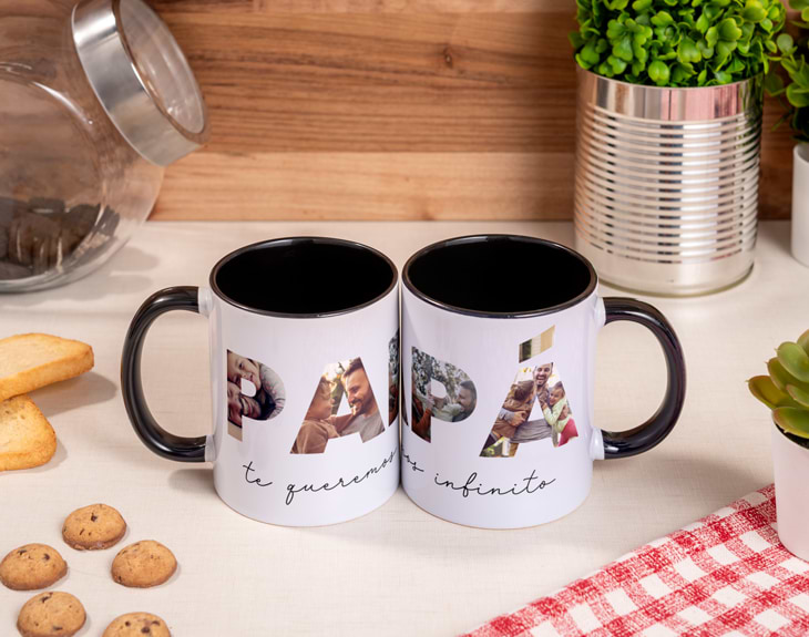 No hay nadie como papá. Siempre está ahí, en los momentos importantes y en los pequeños detalles del día a día. Por eso, si buscas un detalle que realmente le emocione, esta taza personalizada "Papá collage" es el regalo perfecto. Un diseño único donde cada letra de la palabra PAPÁ se completa con vuestras fotos favoritas, creando un recuerdo que le acompañará cada mañana. Este regalo original para el Día del Padre combina emoción y utilidad en un solo detalle. Mientras disfruta de su café, té o desayuno, podrá revivir esos momentos especiales que habéis compartido juntos. Además, podrás añadir un texto personalizado debajo: sus nombres, una fecha especial o una dedicatoria que le recuerde lo mucho que significa para vosotros. Lo mejor es que es muy fácil de crear. Personalizar esta taza para papá solo te llevará unos minutos: añade el producto al carrito, entra en el diseñador y sube una foto para cada letra. Nosotros nos encargamos de que el resultado quede perfecto y listo para regalar. Será una sorpresa que no olvidará. Además, puedes elegir entre diferentes tipos de taza: cerámica clásica, taza mágica, con interior de color, con cuchara o con asa en forma de corazón. Elige la opción que mejor encaje con papá y crea un regalo personalizado único que se convertirá en su favorito. Un detalle práctico, emotivo y diferente. Porque papá se merece empezar cada día con una sonrisa.