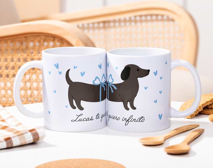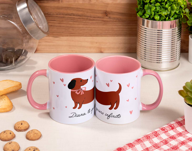 Si tu amor no tiene límites, esta taza personalizada “Amor infinito” es el regalo perfecto. Una taza pensada para quienes sienten sin medida y quieren sin fin. Cada mañana, cada sorbo sabrá a amor del bueno, de ese que reconforta incluso en los días más nublados. Seguro que quien reciba esta taza original y tierna la convertirá en su favorita. Con un adorable perro salchicha como protagonista, lo mejor es que podrás añadir el mensaje que tú quieras, creando una taza única y muy personal. Además, podrás elegir el tipo y el color de la taza que más te guste. ¡Un detalle tan bonito como especial! Para personalizar esta taza, solo tienes que entrar en nuestro diseñador, escoger el color del diseño y escribir el texto que quieras en la parte inferior. En pocos pasos estará lista para regalar o para disfrutarla tú mismo. ¡Un regalo original para parejas, amigas o esa persona especial que quieres sorprender!