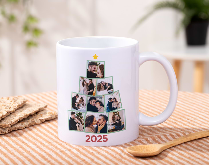 ¡La Navidad ya está aquí! Si ya estás con los preparativos navideños, tenemos algo que no puede faltar en tu cocina. Se trata de nuestra taza “Árbol navideño”, es ideal para que disfrutes de tu café mañanero de la forma más navideña posible. ¡Es genial! Además, esta taza navideña es súper especial porque se puede personalizar con tus fotos. Es genial para que la decores con esas fotos tan bonitas con tu amorcito, con tu familia y con tus amigos. ¡Todos tus seres queridos estarán en esta taza tan bonita! Puedes elegir tres opciones de personalización: poner tres, cinco o hasta nueve fotos. ¡Será la envidia de todos tus invitados! A la hora de personalizar esta taza navideña, no te preocupes porque es súper sencillo. El primer paso a seguir consiste en añadir el producto al carrito y entrar al área de personalización. Una vez ahí, adjuntas todas las fotos seleccionadas y escribe el nombre o las iniciales que quieras. Pronto quedará perfecta y lista para regalar. ¡un original regalo navideño! Al comprar este diseño podrás elegir el tipo de taza que quieres entre nuestras seis opciones disponibles en el desplegable: cerámica, mágica, plástico, con el interior en color, con cuchara o con asa en forma de corazón. En el lado derecho encontrarás la guía de tazas con las características de cada una de ellas. ¡Escoge el estilo y la cantidad de tazas que quieras!