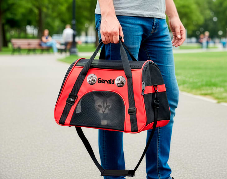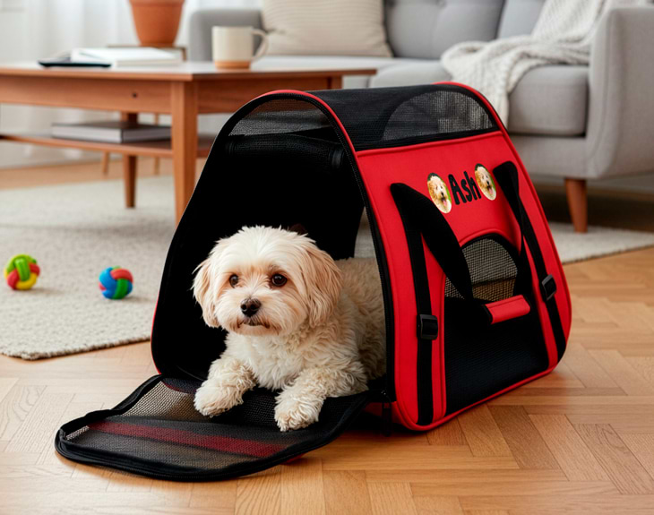 Viajar con tu compañero peludo nunca fue tan fácil y especial como con este transportín para mascotas personalizado con foto y nombre. Un accesorio imprescindible para quienes buscan comodidad, seguridad y un toque único en cada salida. Este transportín personalizado para perros y gatos te permite añadir una foto de tu mascota junto a su nombre. Perfecto para llevarlo siempre contigo de una forma original. Ofrece un espacio cómodo y seguro para cualquier trayecto: visitas al veterinario, viajes o paseos. Su diseño práctico facilita el transporte, mientras que la personalización lo convierte en mucho más que un simple accesorio. Es ideal como regalo personalizado para mascotas o para dueños que quieren lo mejor para su perro o gato. Un producto funcional que combina diseño, calidad y valor emocional. Personalizar tu transportín con foto y nombre es muy sencillo: añade el producto al carrito, sube la imagen de tu mascota, escribe su nombre y visualiza el resultado antes de finalizar tu pedido. Nosotros nos encargamos de que quede perfecto. Un transportín original y personalizado para mascotas que une estilo, seguridad y cariño en cada viaje. Medidas: 36cm/45,5cm/23,5cm