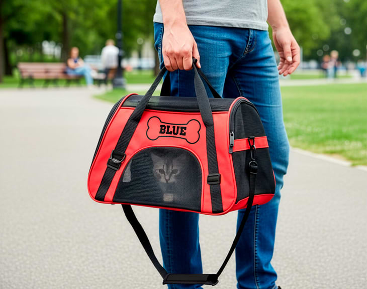• Transportín para mascotas personalizado. • Tarjeta recordatoria.