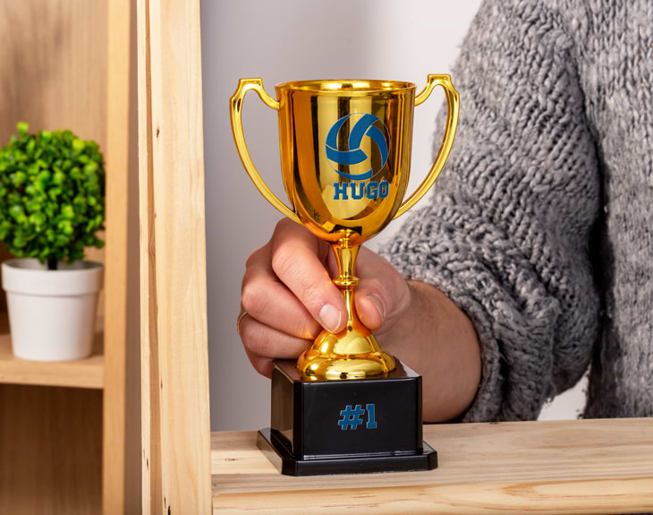 Haz que tu profe de deportes se sienta el auténtico campeón del curso con este trofeo personalizado. Es el regalo perfecto para agradecerle todo su esfuerzo, su energía y por haberte acompañado durante un año lleno de actividad, aprendizaje y espíritu deportivo. Este trofeo original tiene un diseño especial pensado para los profes más activos. Puedes elegir el balón que mejor lo represente: fútbol, tenis, pádel, vóley, rugby o baloncesto. ¡Seguro que encuentras el que encaja con su asignatura o deporte favorito! Y ahora viene la parte más divertida: personalizar el trofeo. Es muy fácil. Solo tienes que añadirlo al carrito y entrar en nuestra área de personalización. Allí podrás escribir el texto que quieras tanto en la parte superior como en la base del trofeo. ¡Será un detalle único que le encantará tener en su despacho, clase o sala de entreno! Este fin de curso, demuéstrale a ese profe tan entregado que su trabajo ha dejado huella. Sorpréndelo con un regalo original para profesores que nunca olvidará. Medida: 18 x 10,5 cm aprox. Material de la copa y de la base: plástico y metal.