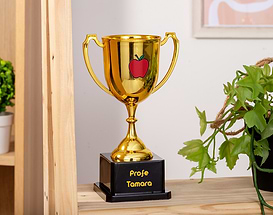 • Trofeo de cristal grabado. • Tarjeta Recordatoria.