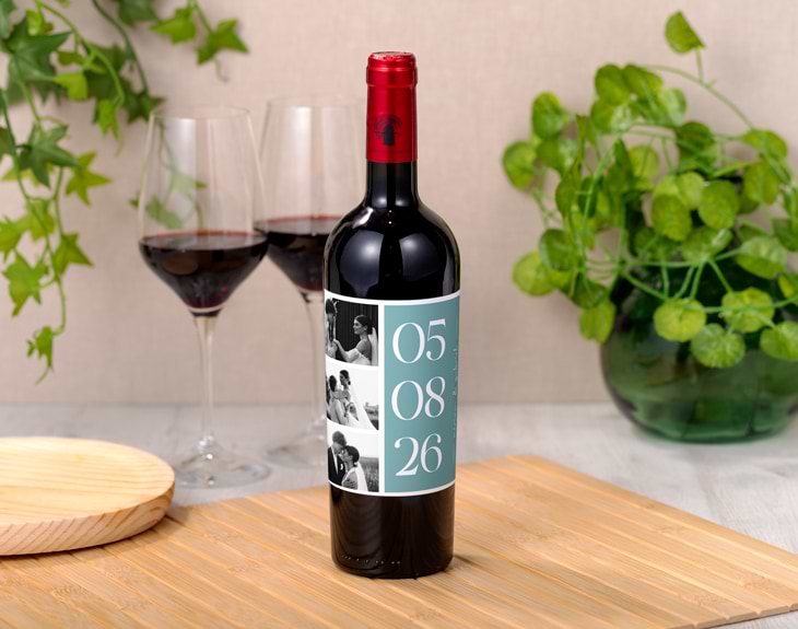 Los aniversarios y las fechas especiales en pareja merecen celebrarse por todo lo alto. Y con un detalle como esta botella de vino personalizada acertarás seguro. No hay nada como brindar con un buen vino mientras disfrutáis de vuestras fotos en la propia botella. Un momento único convertido en un recuerdo para siempre. Lo más especial de esta elegante botella es que puedes personalizarla a tu gusto: añade vuestras fotos favoritas, incluye una fecha especial y escribe el mensaje que quieras. Es el regalo ideal para sorprender a tu pareja en vuestro aniversario, en un cumpleaños o incluso en el Día de San Valentín. Además, se trata de un vino de la Tierra de Castilla y León, perfecto para los paladares más exigentes. Una forma original y emotiva de decir “te quiero” con un detalle que será solo suyo: una botella de vino personalizada con diseño romántico. ¡Un regalo para parejas que siempre triunfa! Personalizar esta botella de vino es muy sencillo. Solo tienes que añadir el producto al carrito y pulsar el botón de personalizar. Desde ahí podrás subir tres fotos y escribir el texto que desees. En unos segundos tendrás un diseño precioso y listo para brindar por lo vuestro. ¡Así de fácil y especial!